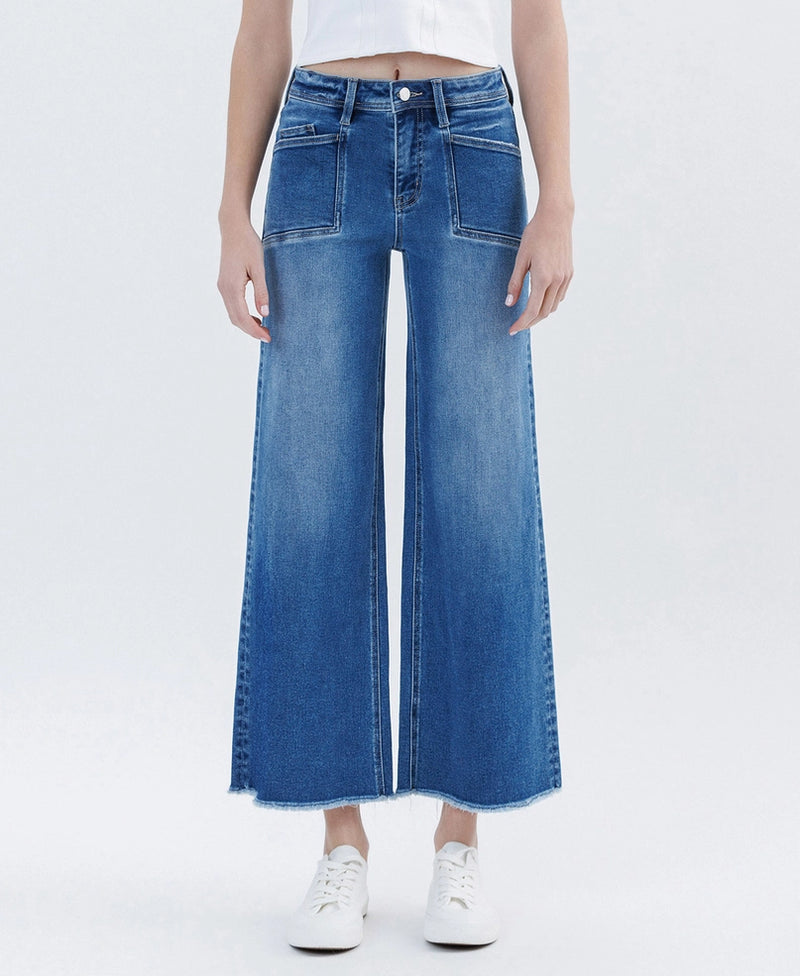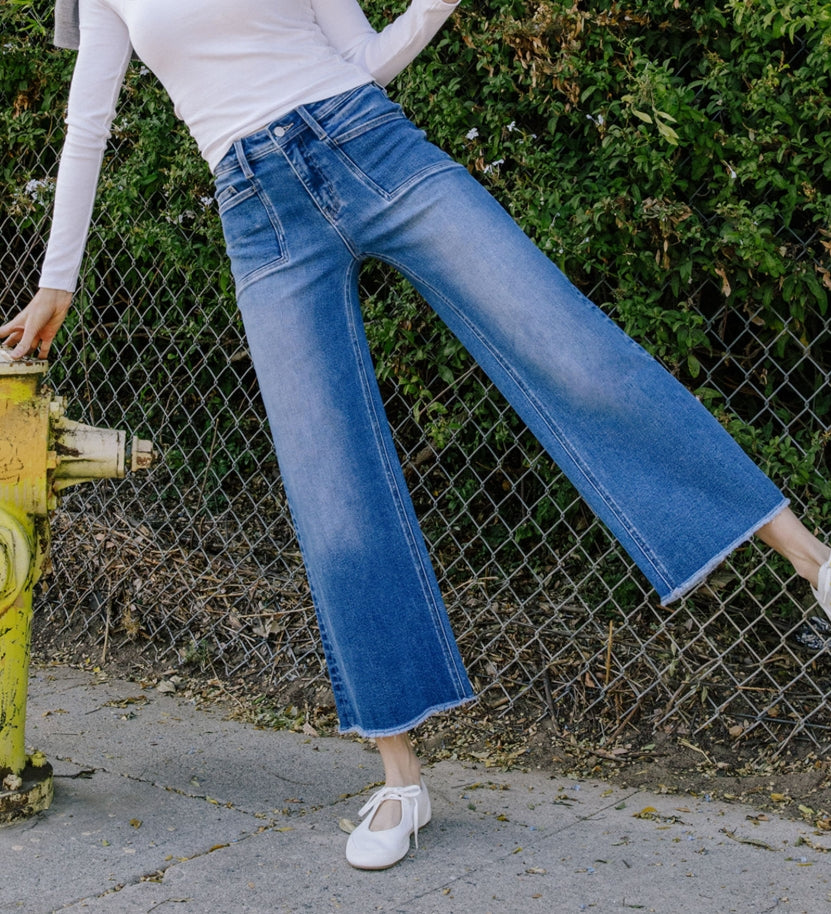 Risen High Rise Wide Leg Front Yoke Seam Jeans