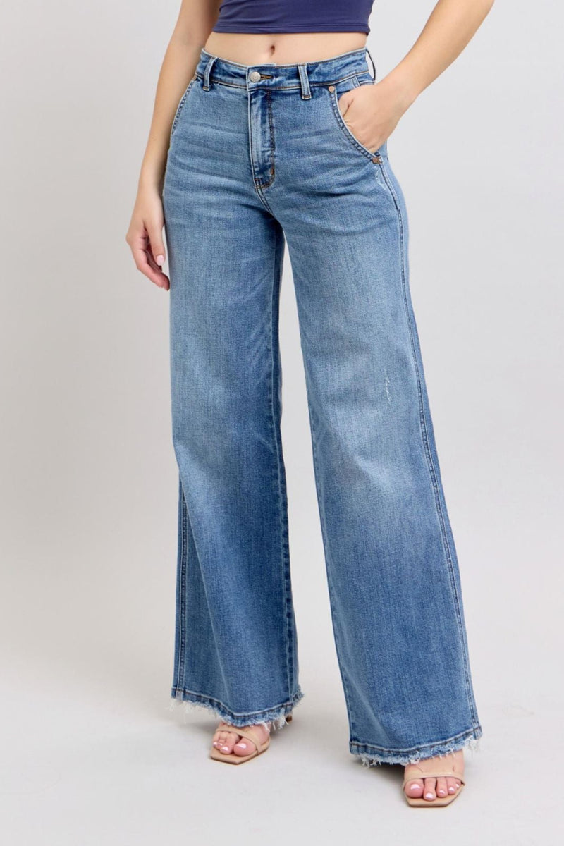 Judy Blue Mid Rise Retro Wide Leg Jeans