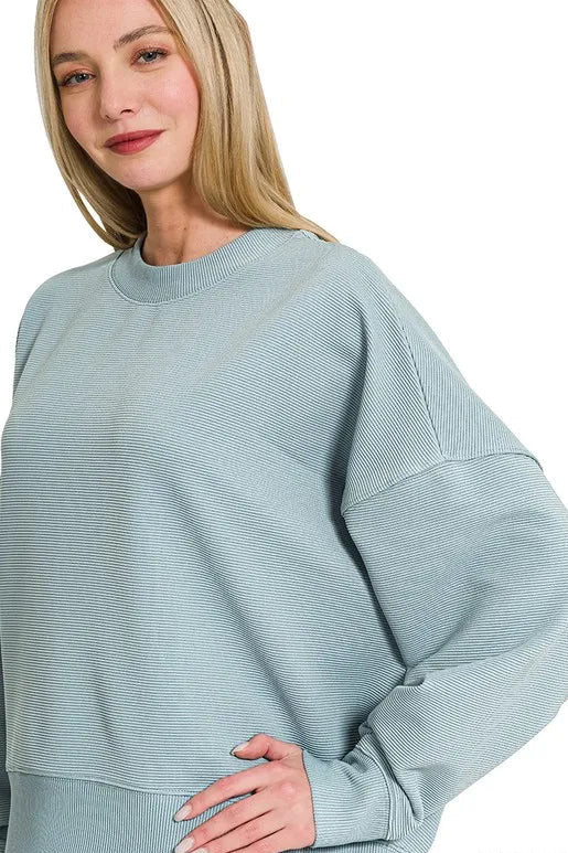 Zenana French Terry Acid Wash Boat Neck Sweatshirt