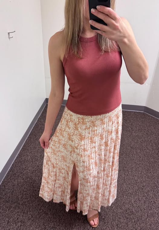 Milk Tea Tiered Smocked Waist Midi Skirt