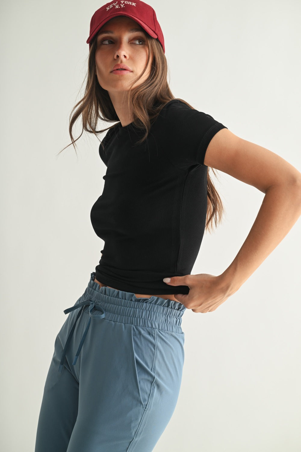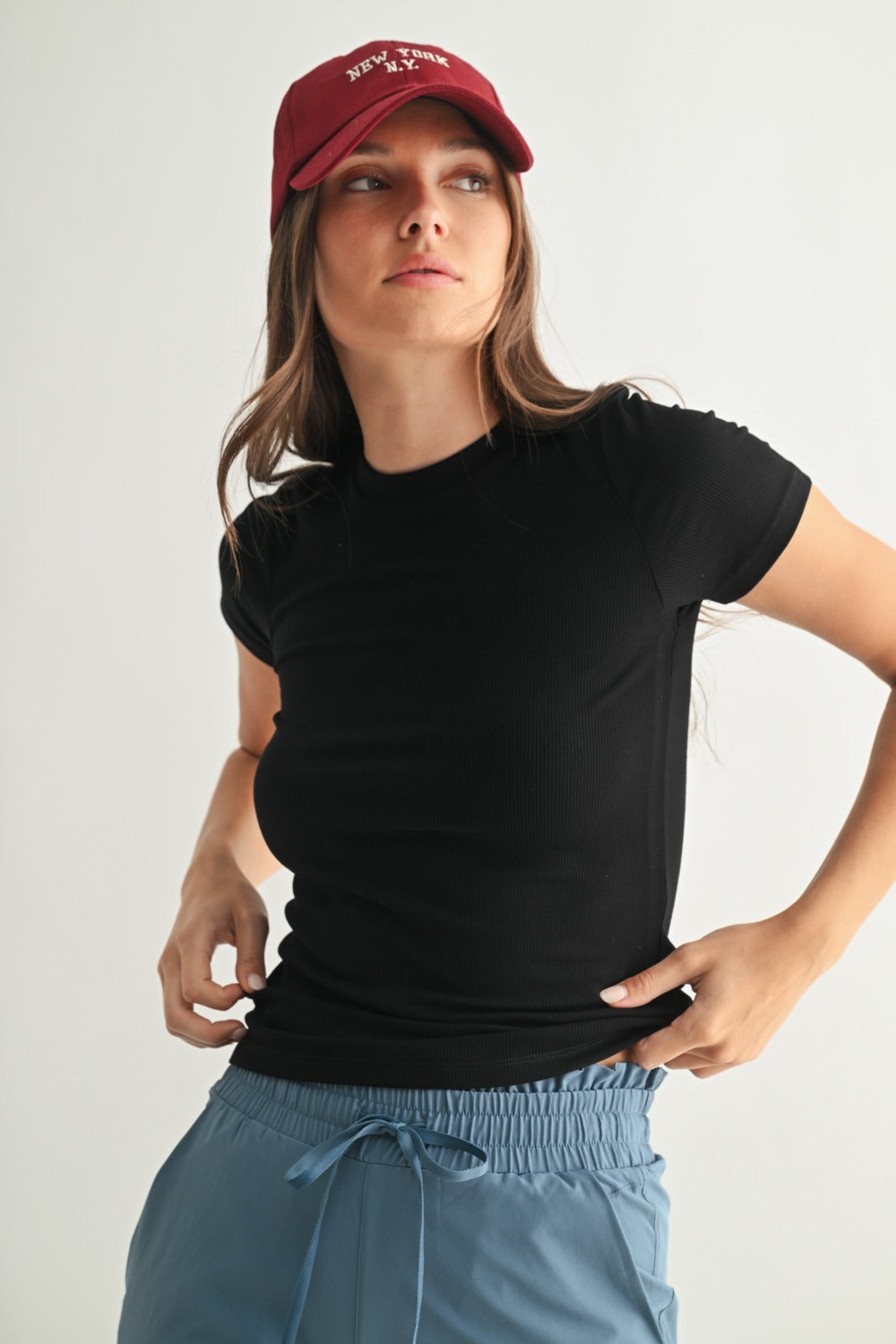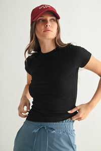 This black top is designed with a crew neckline, short sleeves, and finished with a clean hem. This knit top is a timeless, effortless, essential layering piece that is sure to become a new staple in your wardrobe!