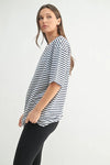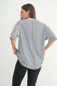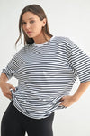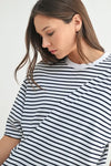 Mono B Coastal Cotton Striped Oversized Crewneck Tee