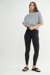 This classic oversized tee features a crew neckline with contrasting trim, short sleeves, a raw edge at the sleeves and hemline, and comfortable oversized fit. This casual style pairs well with bike shorts and denim for an effortless look! Stay comfortable with this easy-to-wear and versatile tee that embodies a coastal charm.