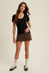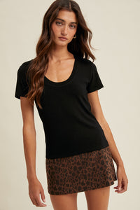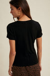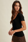 Ribbed Scoop Neck Knit Short Sleeve Top - Black